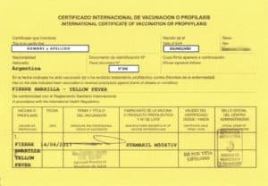 El certificado es un cartón (cartulina, papel grueso de +120gsm) color amarillo que lleva en su tapa la insignia del WHO (World Health Organization). En el caso de Argentina es como la foto de portada y por dentro como esta imagen: