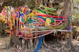 Los arboles no han de tomarse a la ligera en Tailandia. Es común ver a tailandeses pagando reverencia a arboles, poniendo mantas alrededor de ellos, colgando vestidos, imágenes de Buddha o del rey, o esparciendo talco sobre el tronco.